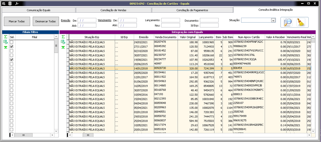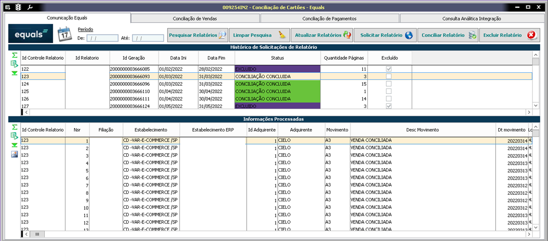 Contas a Receber > Cartão > Conciliação de Cartões > Conciliação de Cartões Equals > 009254