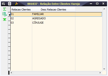 1. Acesse a tela 001037 - Relação Entre Clientes Varejo.