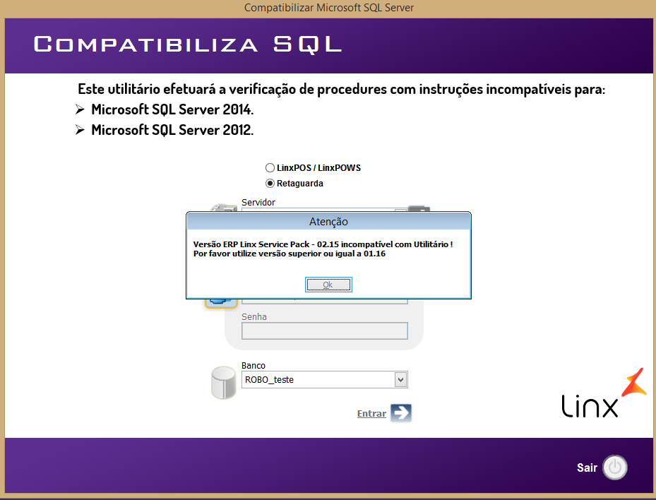 O objetivo desse utilitário é compatibilizar o banco de dados do Linx POS, Linx POWS, Linx ERP e Linx ERP Franquia com o SQL 2012/2014, em ambientes que instalem essas versões do SQL.