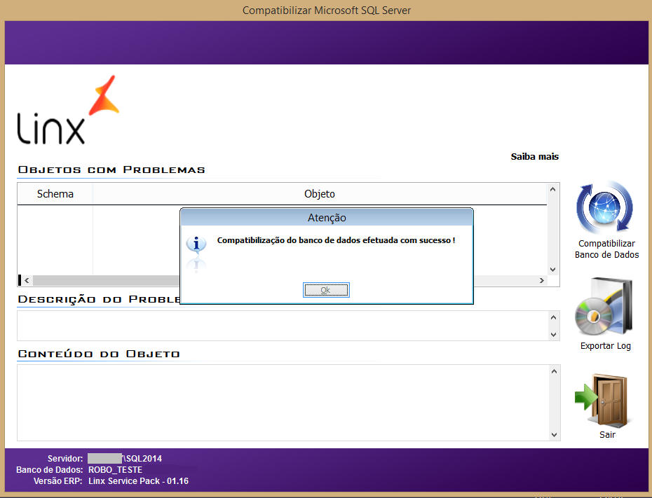 O banco de dados estará compatibilizado com a nova versão do SQL (2012/2014) e o produto Linx poderá ser utilizado corretamente.