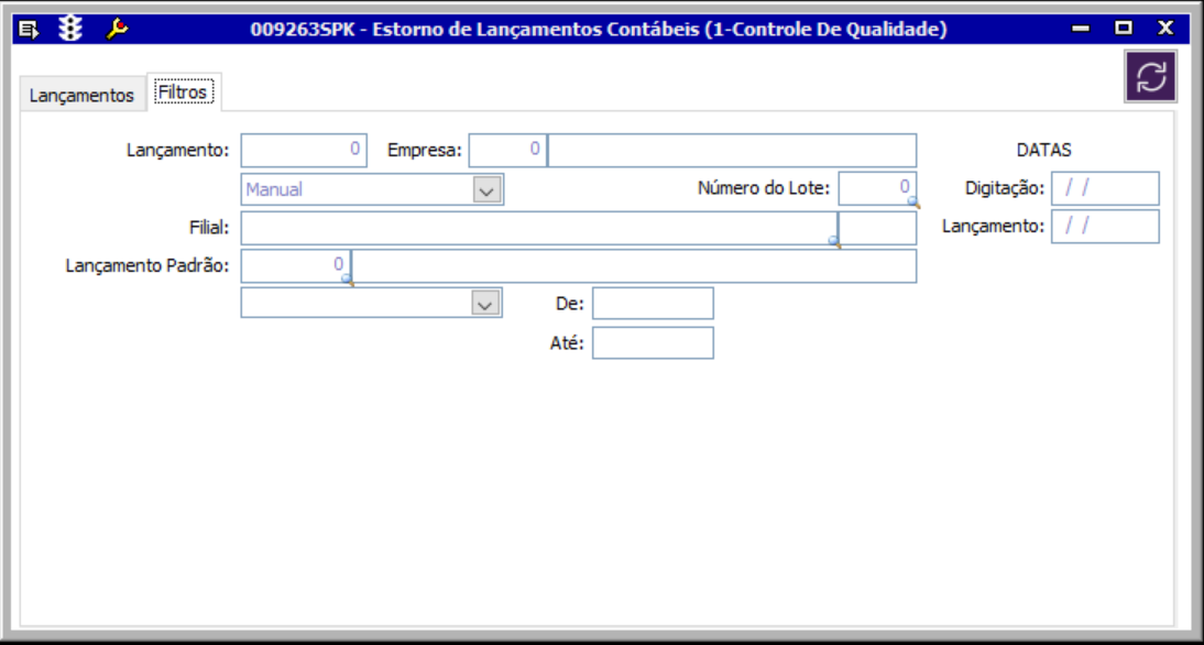 A tela foi criada para permitir gerar o estorno de Lançamento Contábil em massa.