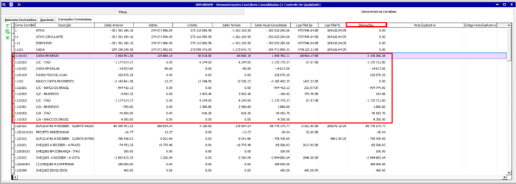 - O sistema subtrai os valores das contas das empresas Controladas.