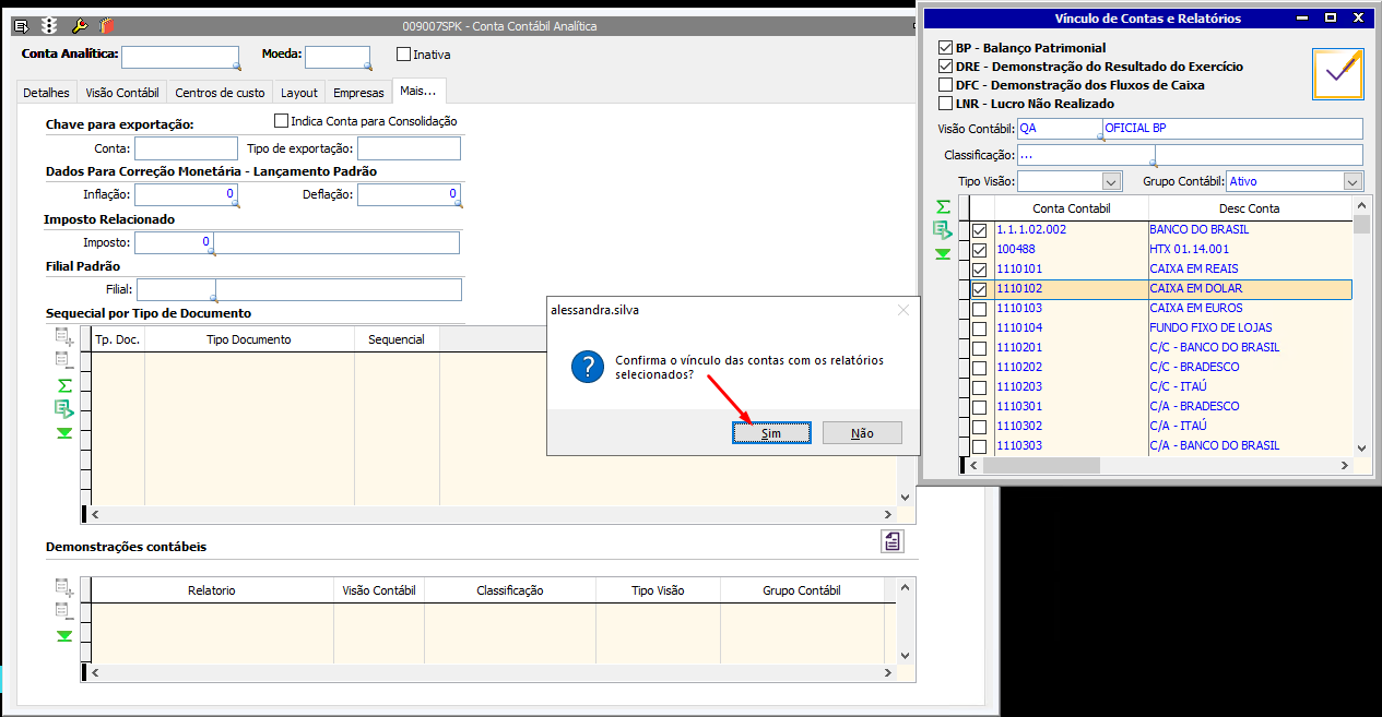 - Realizado o vinculo do relatório a o Plano de Conta criado na tela 009039