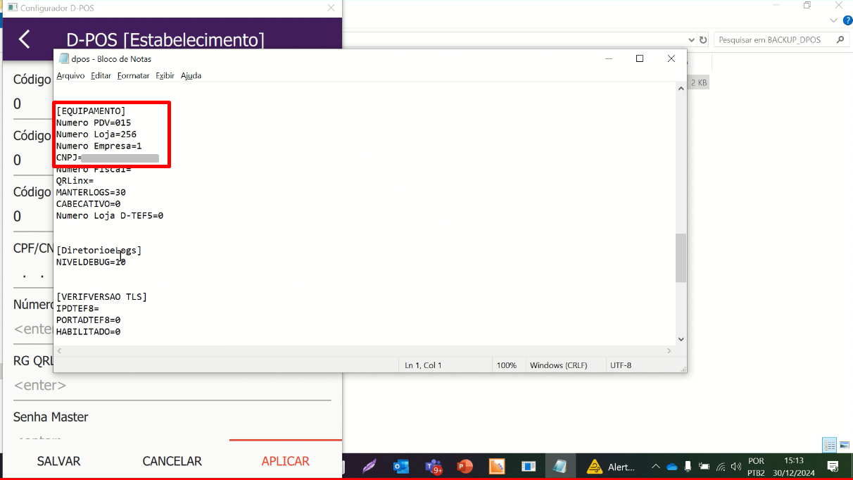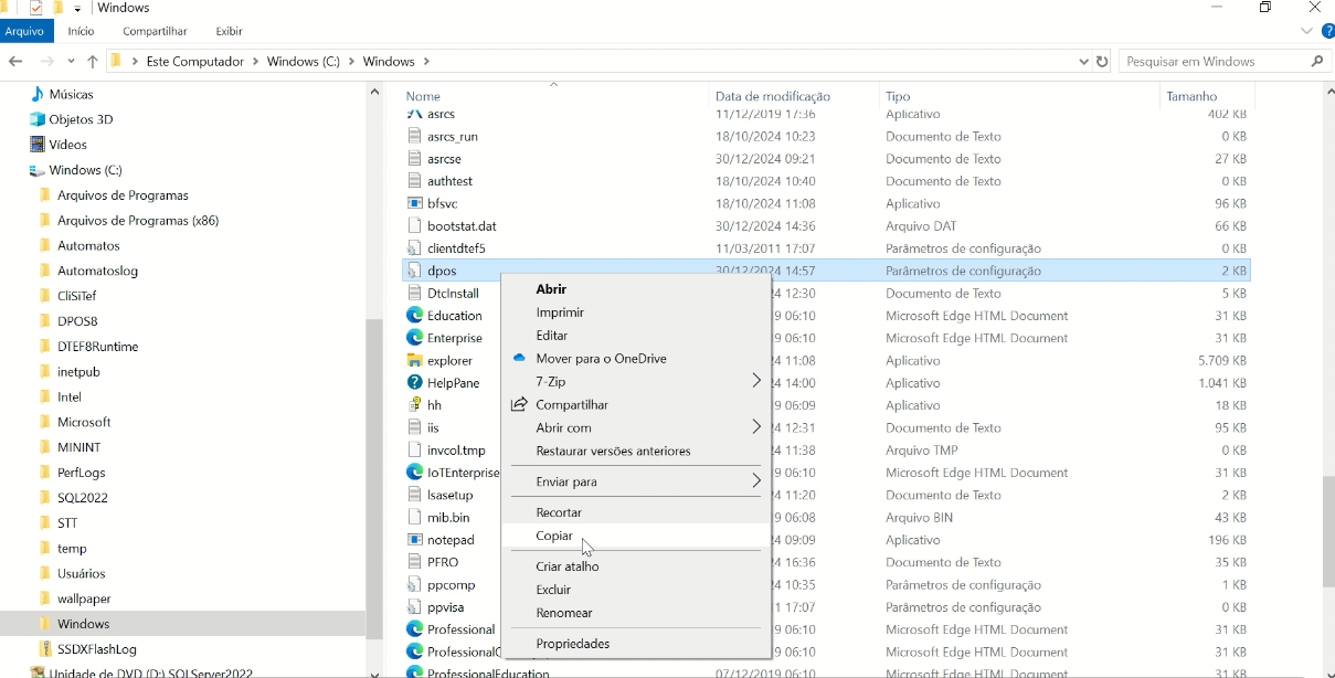 - Realizar backup do arquivo dpos.ini em uma pasta isolada.