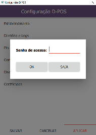 Para a senha de acesso solicitada utilizar DPOS <<HORA + MINUTO>> (Exemplo: DPOS1230).