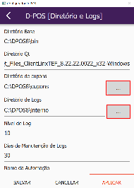 - Acesse Diretório e Logs, e configure os caminhos a seguir conforme orientação abaixo: