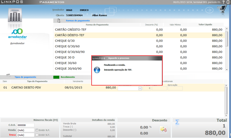 5. Ao finalizar o processo de venda, será iniciada a operação de TEF.