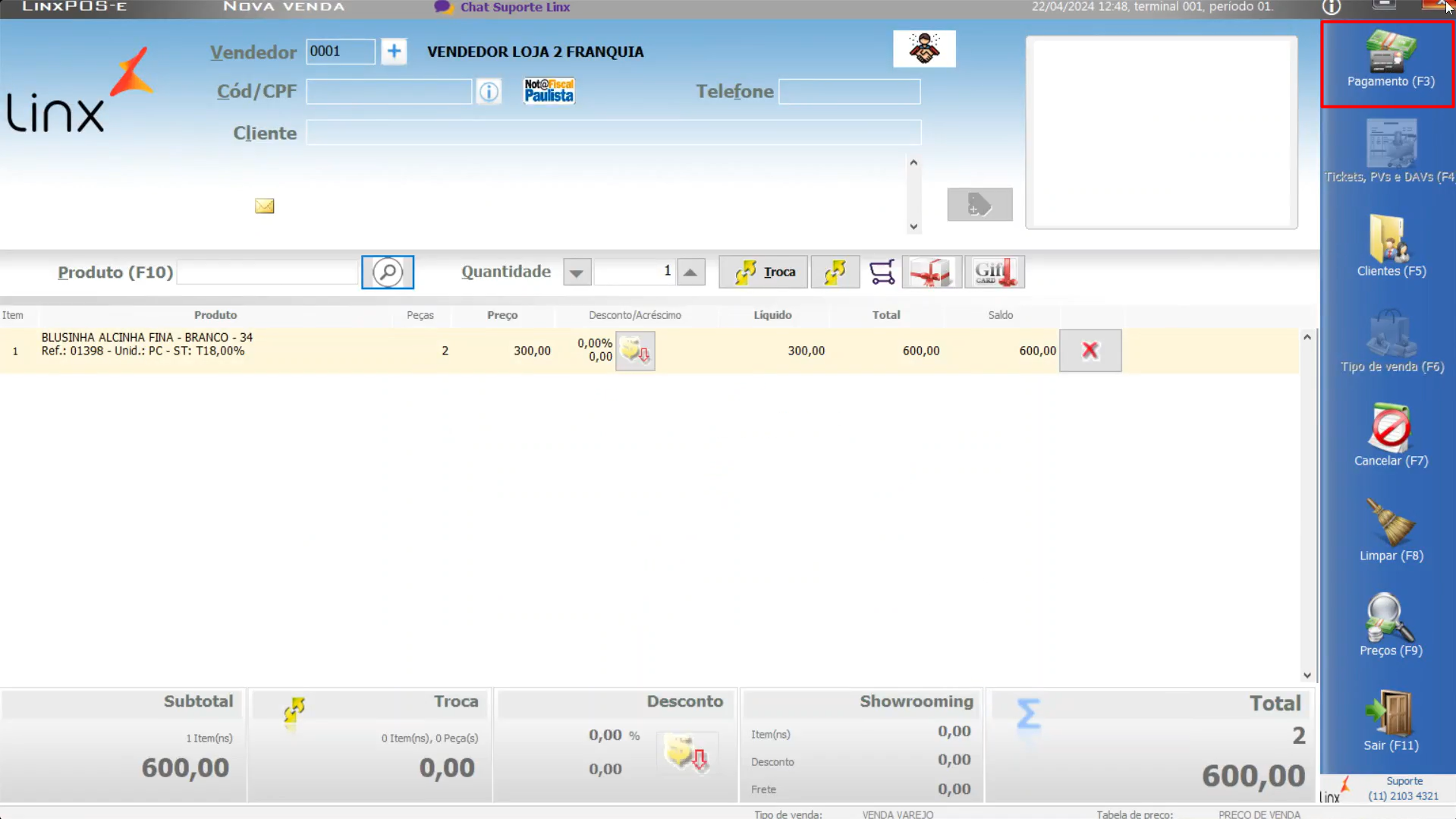 2. Informe os dados do vendedor, do cliente, do produto e suas quantidades.
