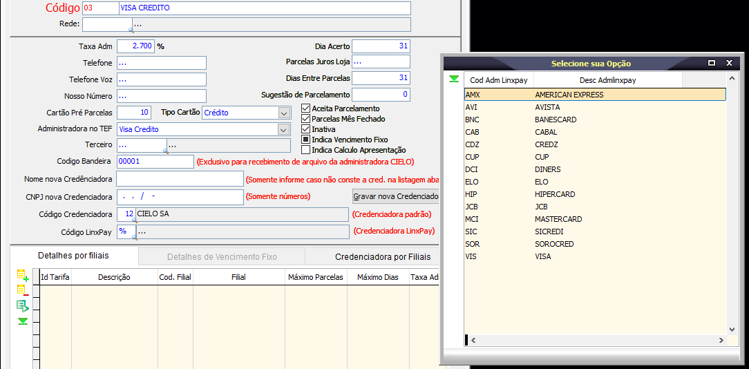 Antes de utilizar a opção Link de pagamento na loja, é preciso determinadas configurações no Linx ERP, na tela 095010 - Administradora do Cartão.