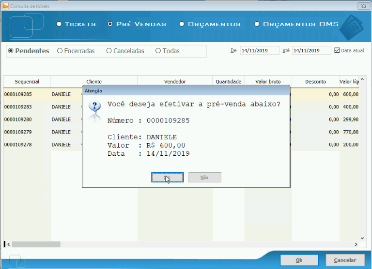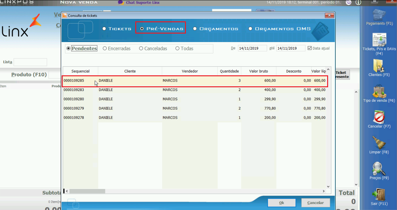 3. Clique no botão Tickets, PDVs e DAVs (F4)