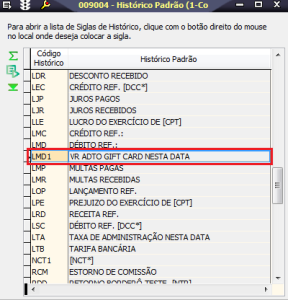 Insira um histórico na tela 009004 - Histórico Padrão.