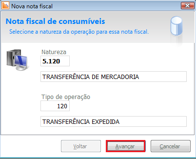 4. Realize os procedimentos para emissão de uma nota fiscal de saída e clique no botão Avançar: