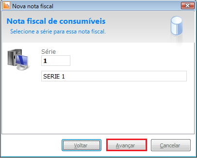 5. Preencha o campo Série da nota fiscal de acordo com a necessidade e clique em Avançar: