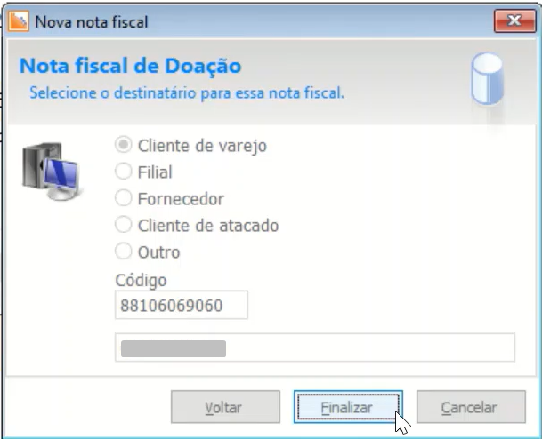 Após determinação, clique em Avançar. - Determine o Destinatário para esta Nota Fiscal.