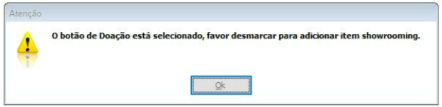 Caso o produto selecionado para doação, não esteja na tabela de preço referida no parâmetro, será exibida a seguinte mensagem: