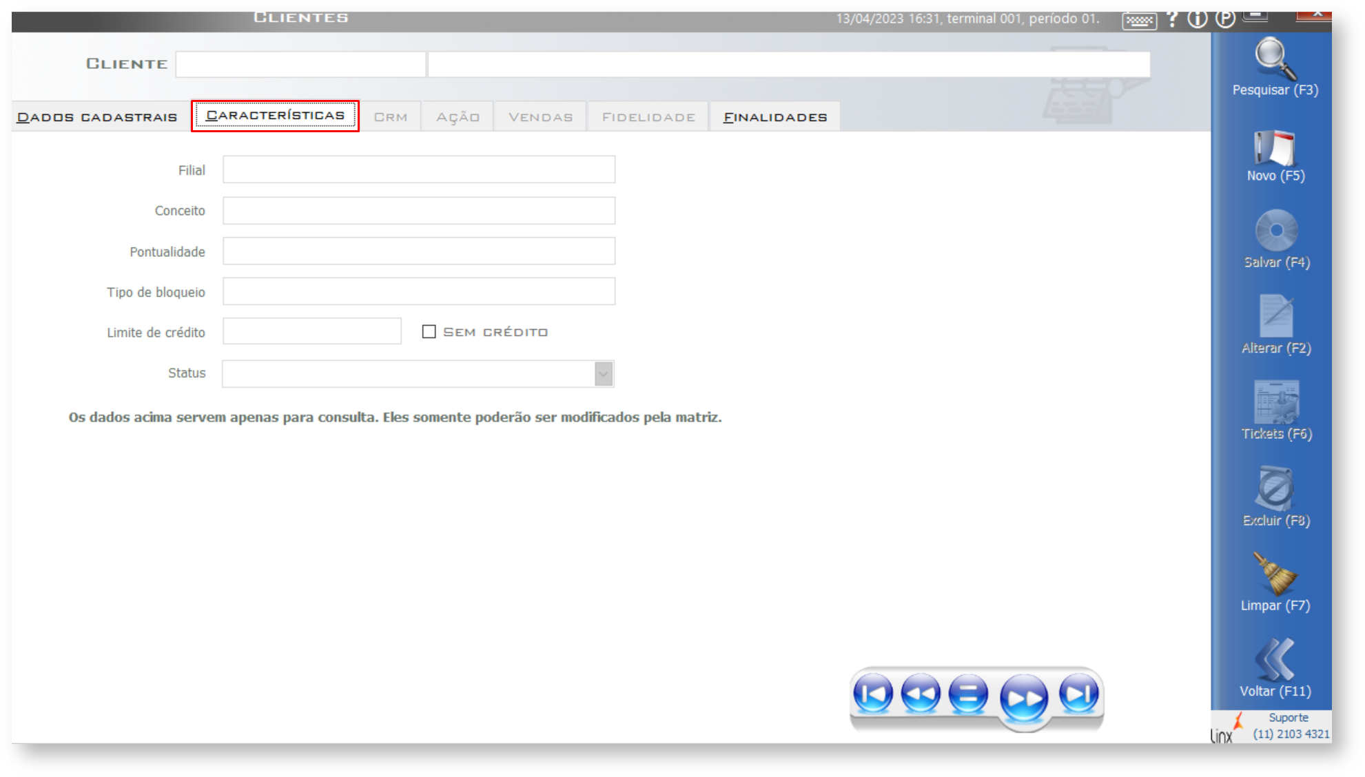 Tanto para o CPF quanto para a data de nascimento, durante a alteração dos dados de um cliente na tela de Cadastro de Clientes, quando configurados para não poder alterar na loja, o Linx POS deve exibir na tela o conteúdo do campo, mas não deve permitir que seja alterado, exceto quando o campo originalmente estiver vazio.