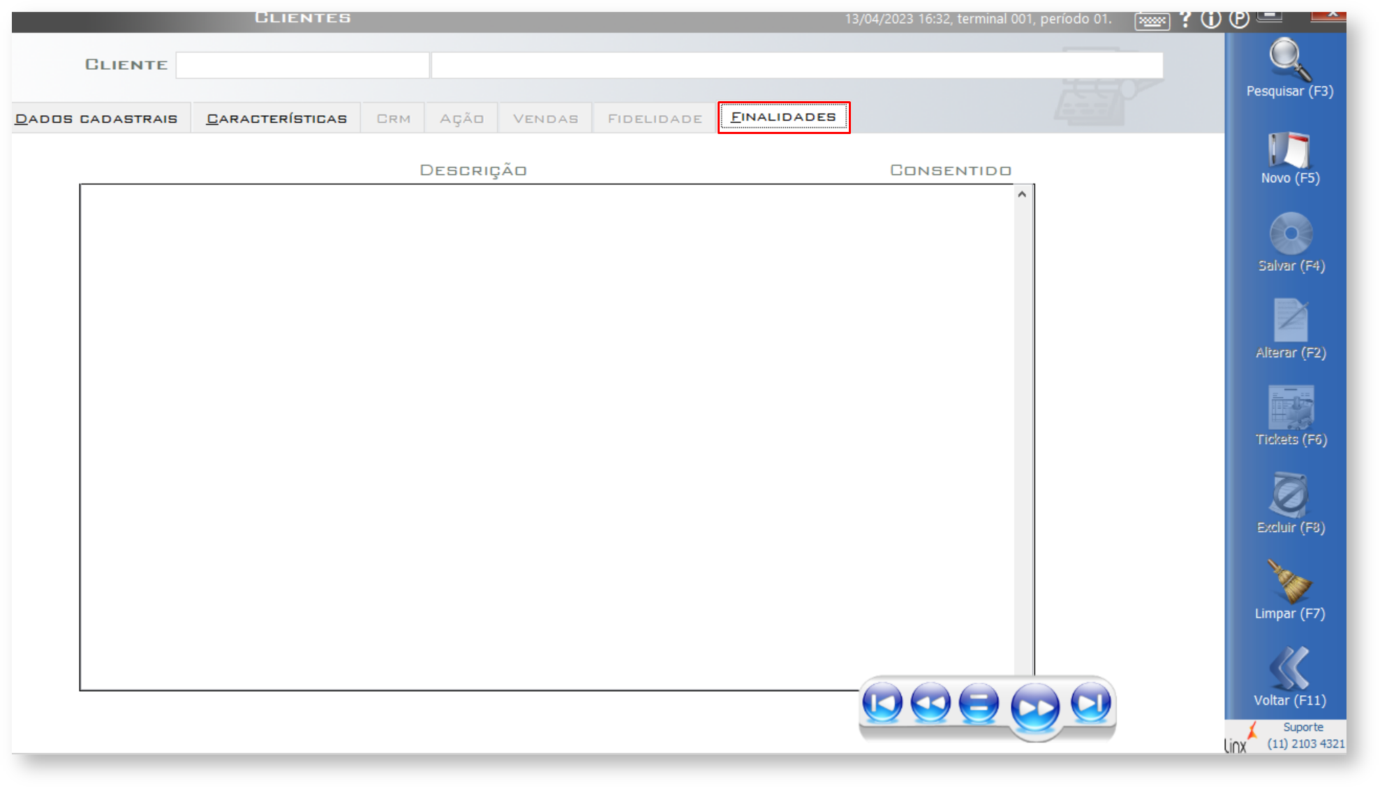 A tela Clientes, inclusa na tela de Vendas do Linx POS, pode ser utilizada tanto para a pesquisa de um cliente já cadastrado quanto para inclusão de um novo registro.