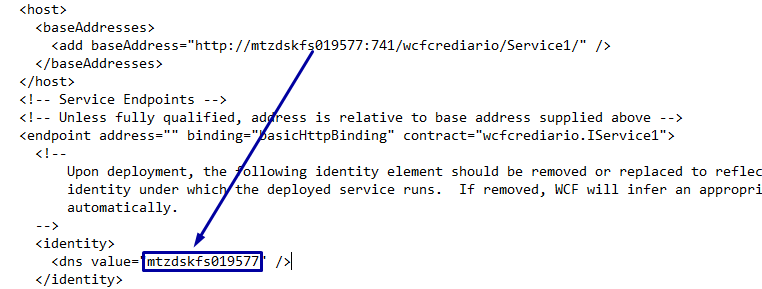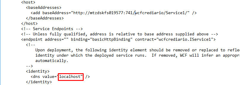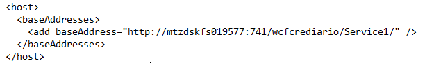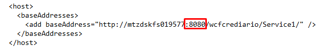 4. Se por normas de segurança existir a necessidade da porta de conexão ser outra, é necessário que altere a tag “baseAddresses”, isto é, informa o nome da máquina e porta conforme o exemplo a seguir.