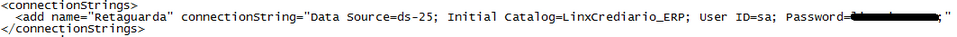 2. Altere a conexão com o servidor de banco de dados, que estará entre as tags “<connectionStrings>”, conforme imagem a seguir:
