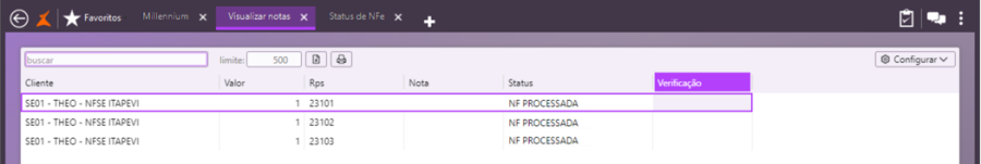 - Em um outro cenário onde todas as notas já foram enviadas para à Sefaz, todas serão canceladas no e-Millennium e seus registros escriturados e integrados.