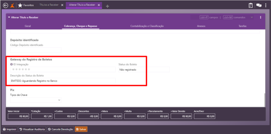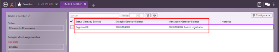 Assim que o boleto for registro pelo banco, uma nova integração será realizada, com a atualização das informações no cadastro do título a receber.