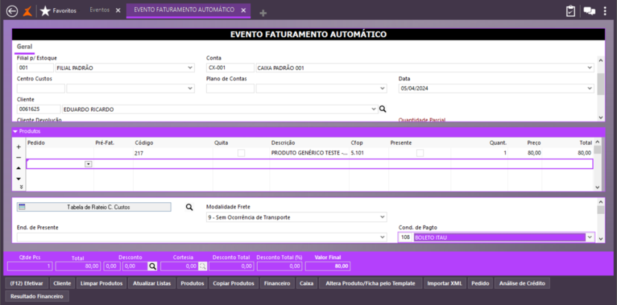 Importante! Este recurso está disponível para faturamento manual, faturamento automático e impressão de documentos.