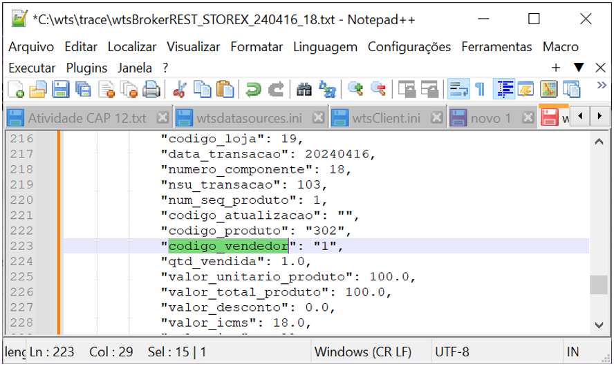 Após executar as rotinas de integração, o e-Millennium, com base nos cadastros existentes, identificou no banco de dados o vendedor Padrão e atribuiu a ele a movimentação de venda realizada.