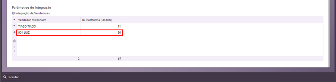 Foi criado um parâmetro, no cadastro de vitrine, para informar o “ID” do vendedor cadastrado na plataforma, que será enviado à API e incluído no pedido de venda.