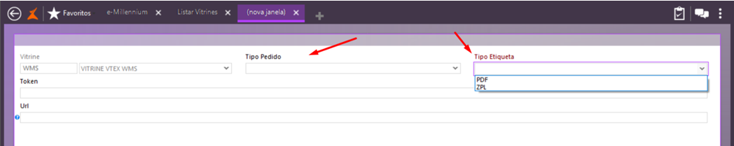 - Selecione o Tipo Pedido a ser tratado para a recuperação das etiquetas;