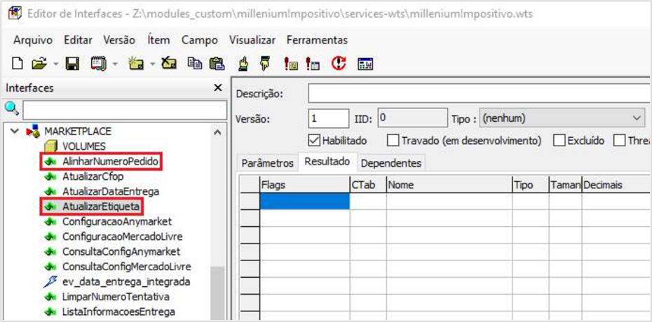 MILLENIUM!MPOSITIVO.MARKETPLACE.ATUALIZARETIQUETA. Ambos estão no objeto MARKTPLACE do millenium!mpositivo.wts.