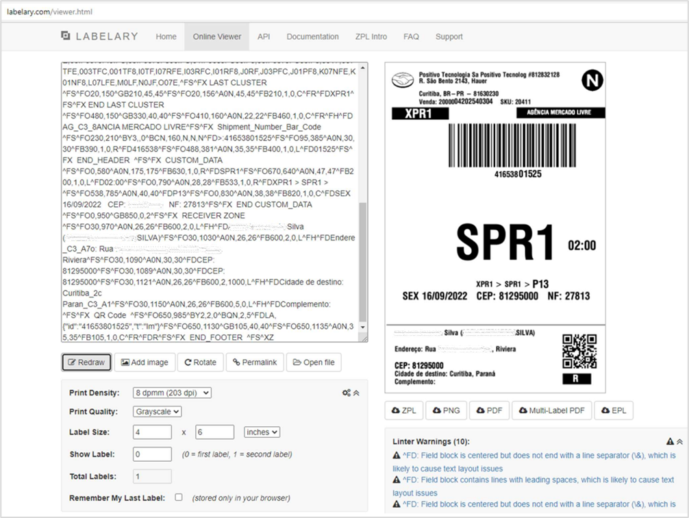 Feitas as configurações, o sistema passa a recuperar a etiqueta de transporte do marketplace configurado e realiza a gravação das informações. Para isso, são executados os métodos: