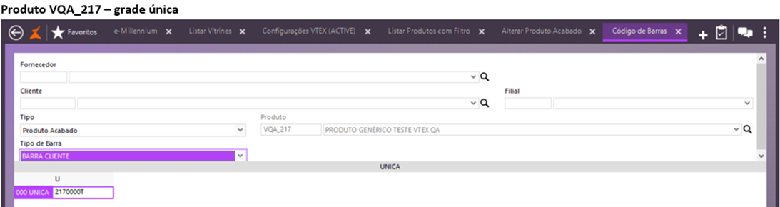 - Criar parâmetro no cadastro de produtos, para definir qual tipo de barra será enviado à Vtex;