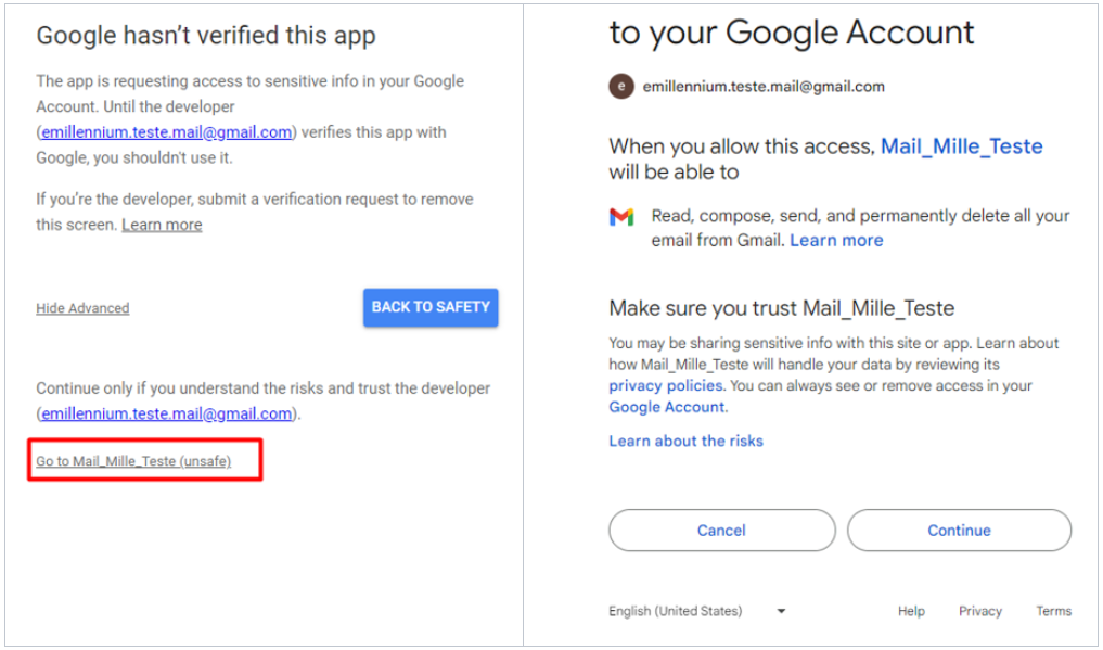 - E clique em Go to email (unsafe);