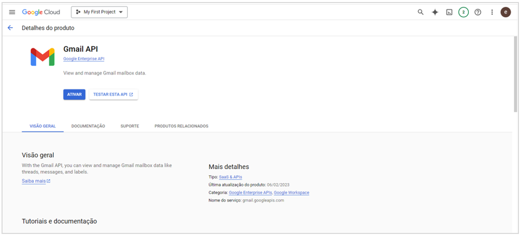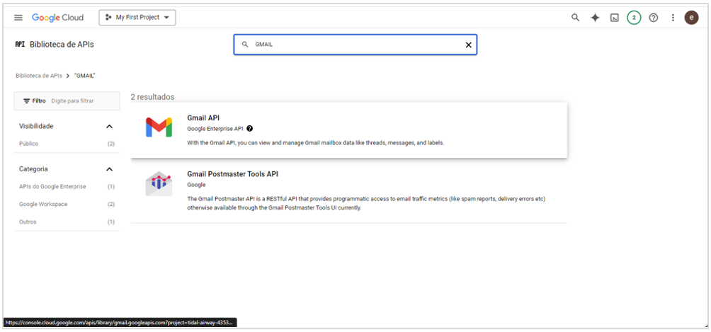 - Selecionar Gmail API;