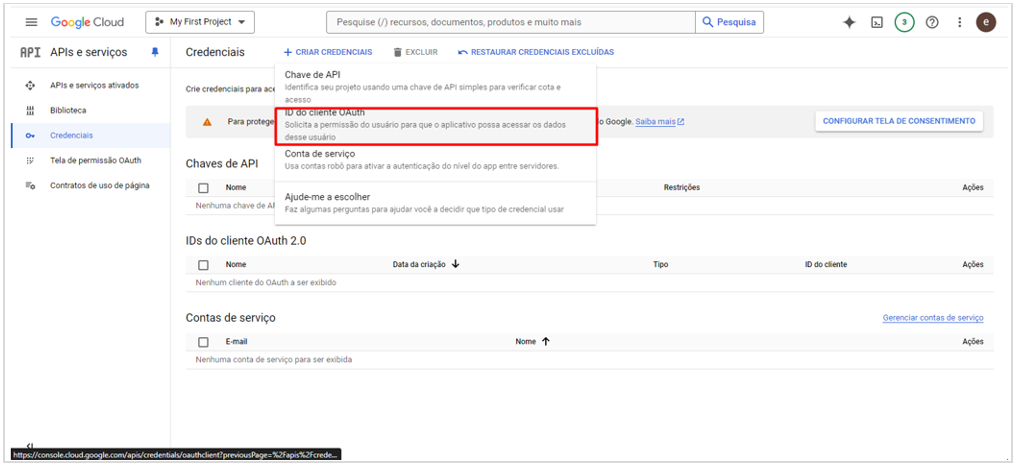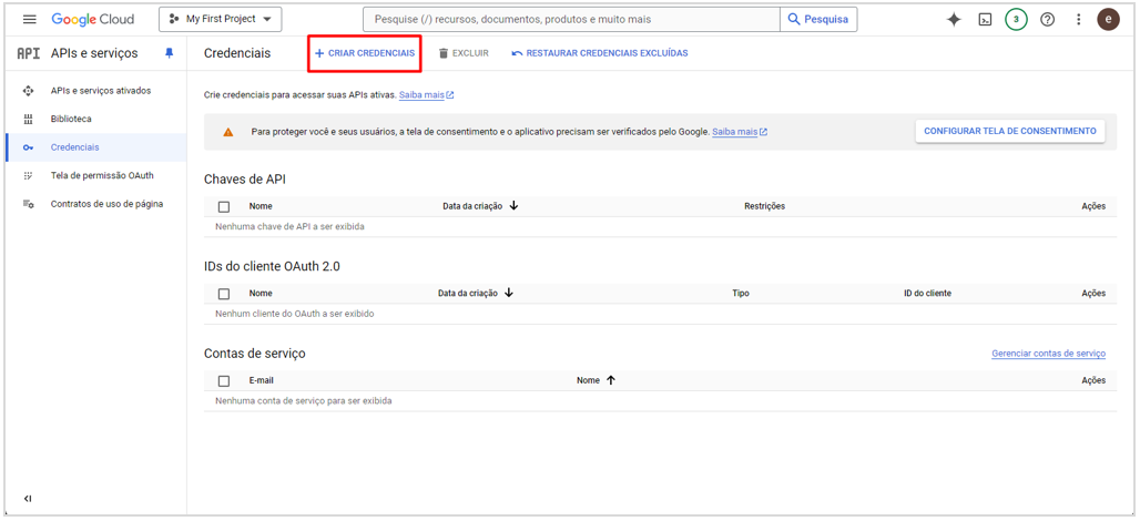 Configurando Credenciais no Google