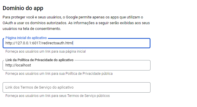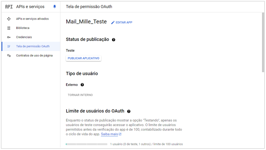 - Selecionar Tela de Permissão OAuth;