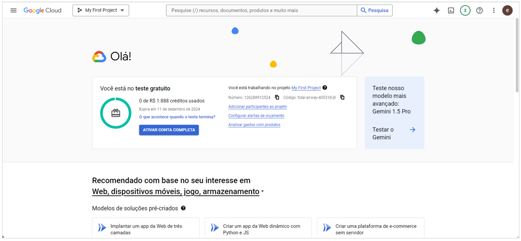 - Acessar o link: https://console.cloud.google.com