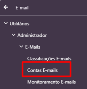 Utilitários > Administrador > Contas de e-Mail