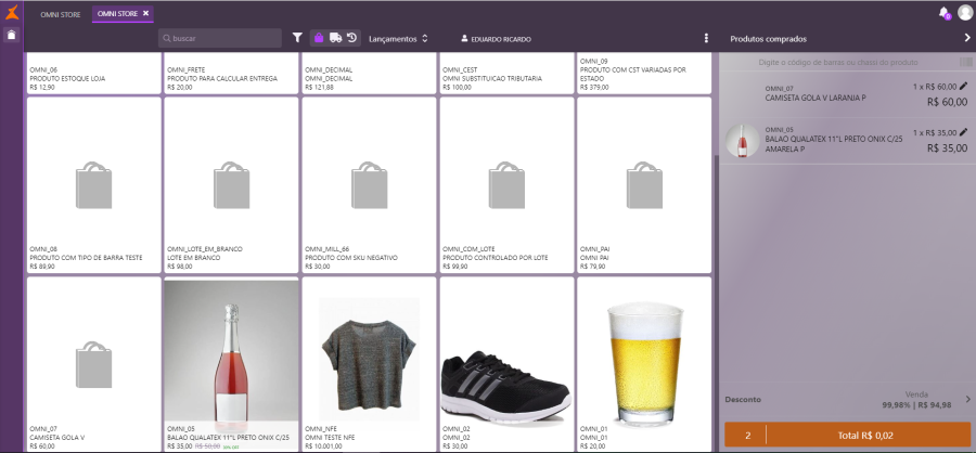 Na tela de venda do PDV OMNI, selecione o cliente, para identificação e selecione os produtos da venda: