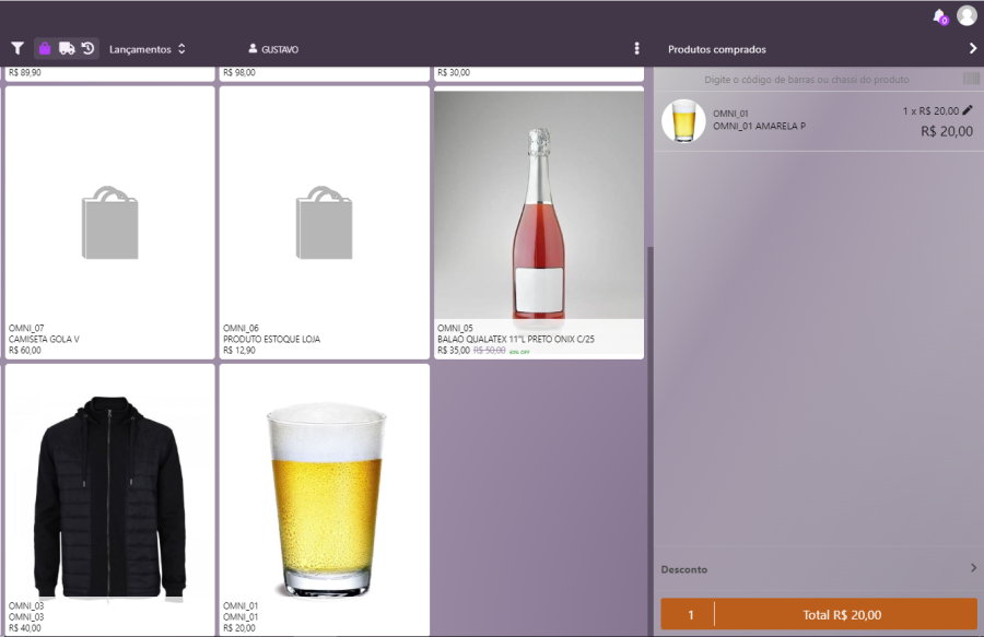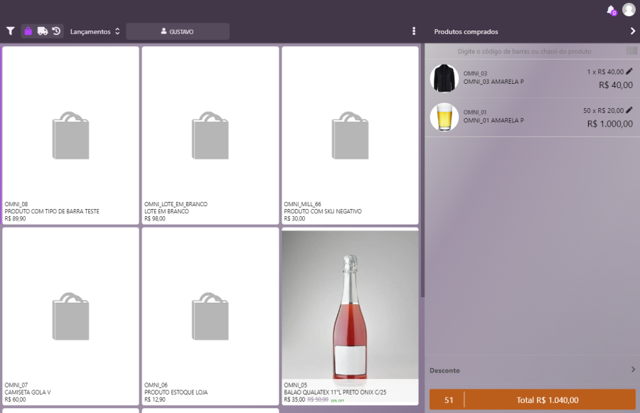 Selecione os produtos e vá para a tela de finalização de venda.