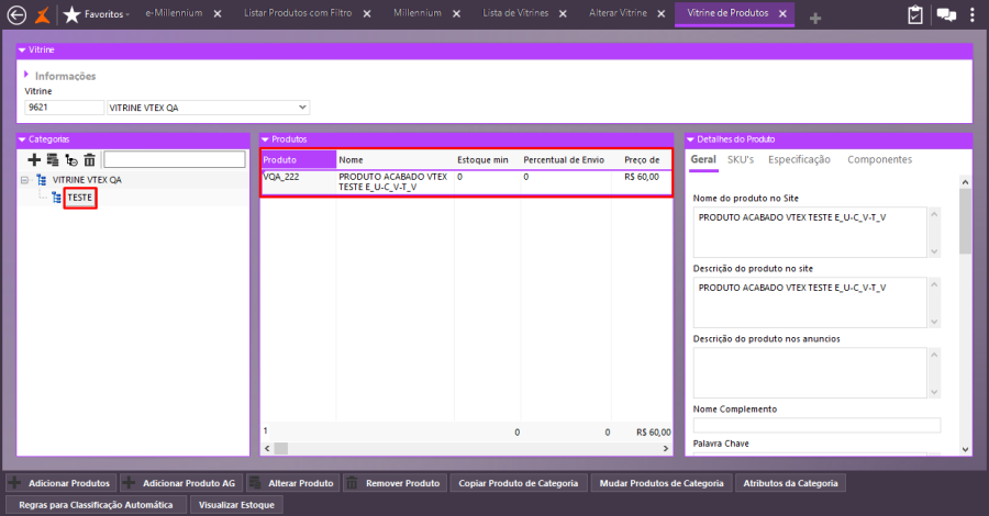 Selecione a vitrine. Serão apresentadas, na tela, as seções Categorias, Produtos e Detalhes do Produto;