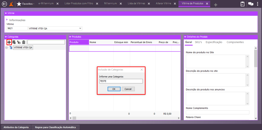 Será aberta a caixa Inclusão de Categorias. Informe a categoria e clique em Ok.