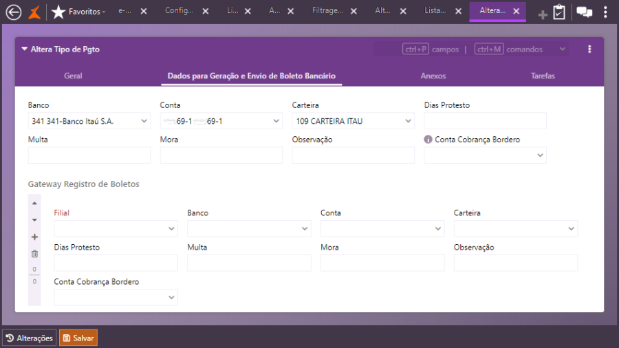 Na tela Alterar Filial, guia Dados Gerais da Filial, selecione o Gateway Registro de Boleto: Tecnospeed PlugBoleto;