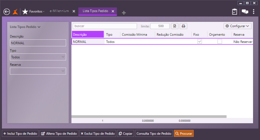 - Acesse a tela Lista Tipos Pedido pelo caminho: Vendas > Cadastros > Tipos de Pedido;
