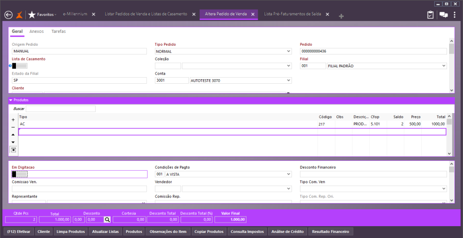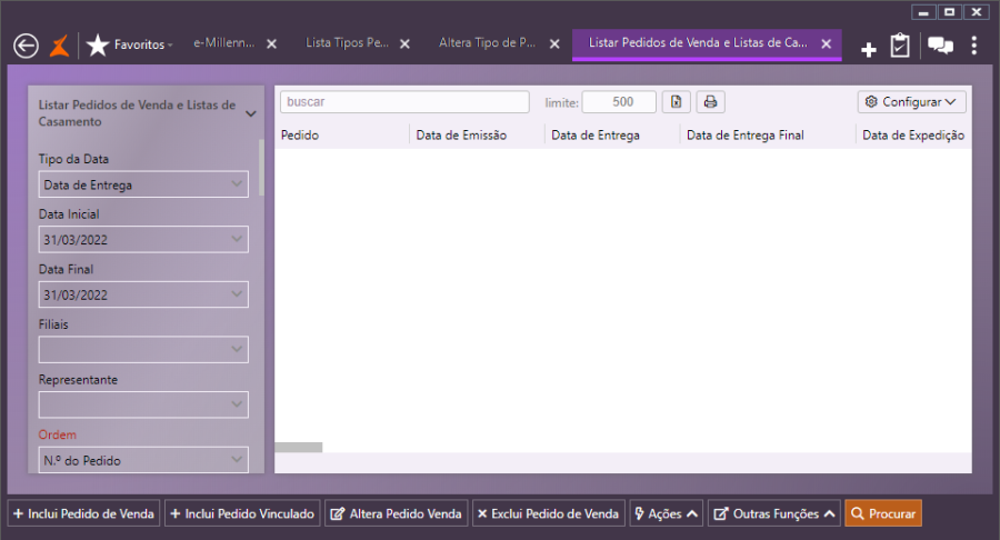 - Acesse a tela Listar Pedidos de Venda e Listas de Casamento pelo caminho: Vendas > Pedido de Venda;