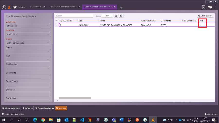 - Volte para a tela Lista Pré-Faturamentos de Saída.