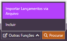 Na tela de Movimentação Contábil, clique em Outras Funções e, em seguida, em Importar Lançamentos via Arquivo.