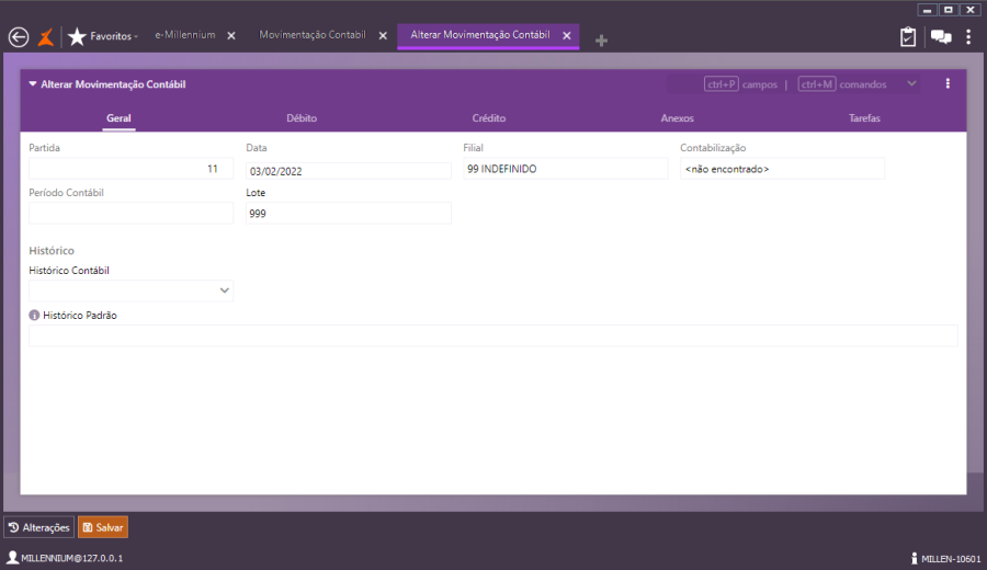 Consultando lançamentos contábeis importados