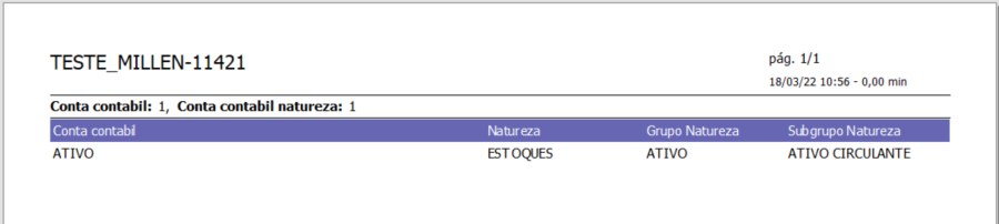 Ao clicar em OK, o relatório exibirá as contas como na imagem abaixo: