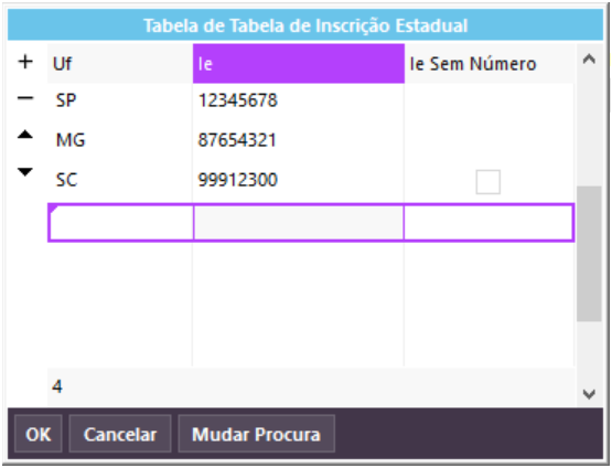 No preenchimento da tabela, insira todas as IEs a serem vinculadas na filial, clique OK e efetive.